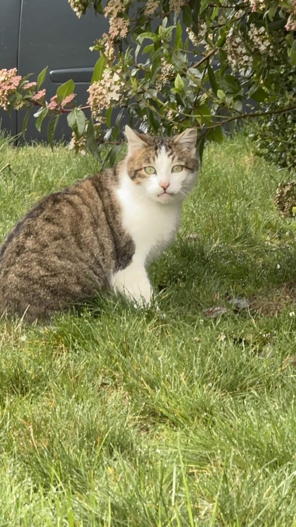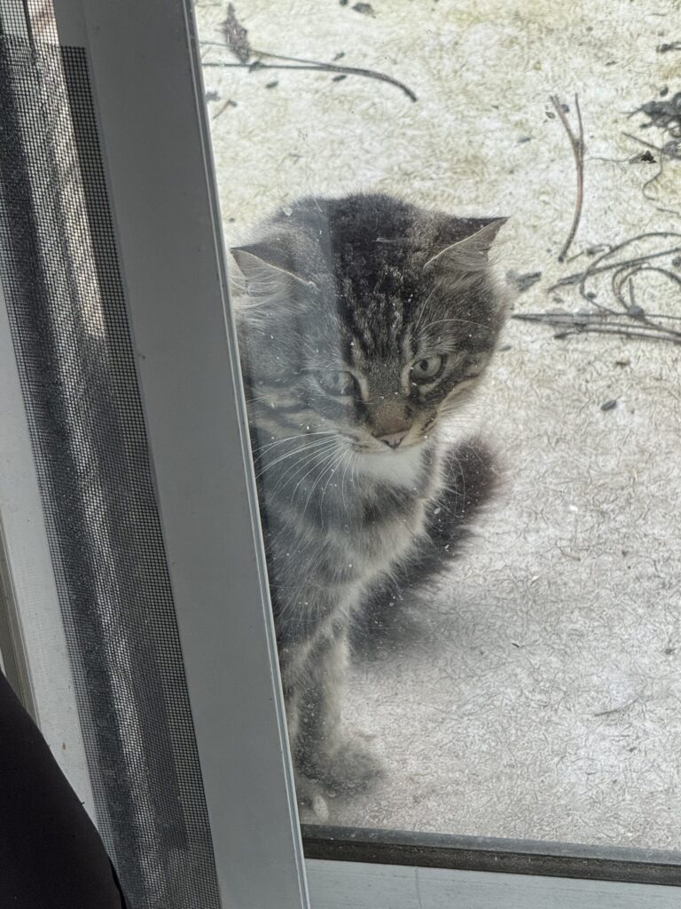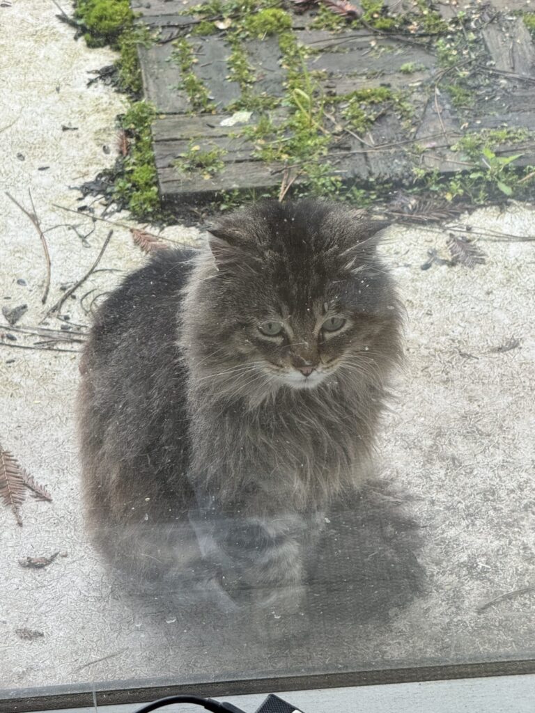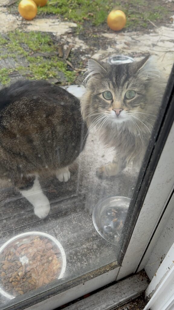 The cats behind the man